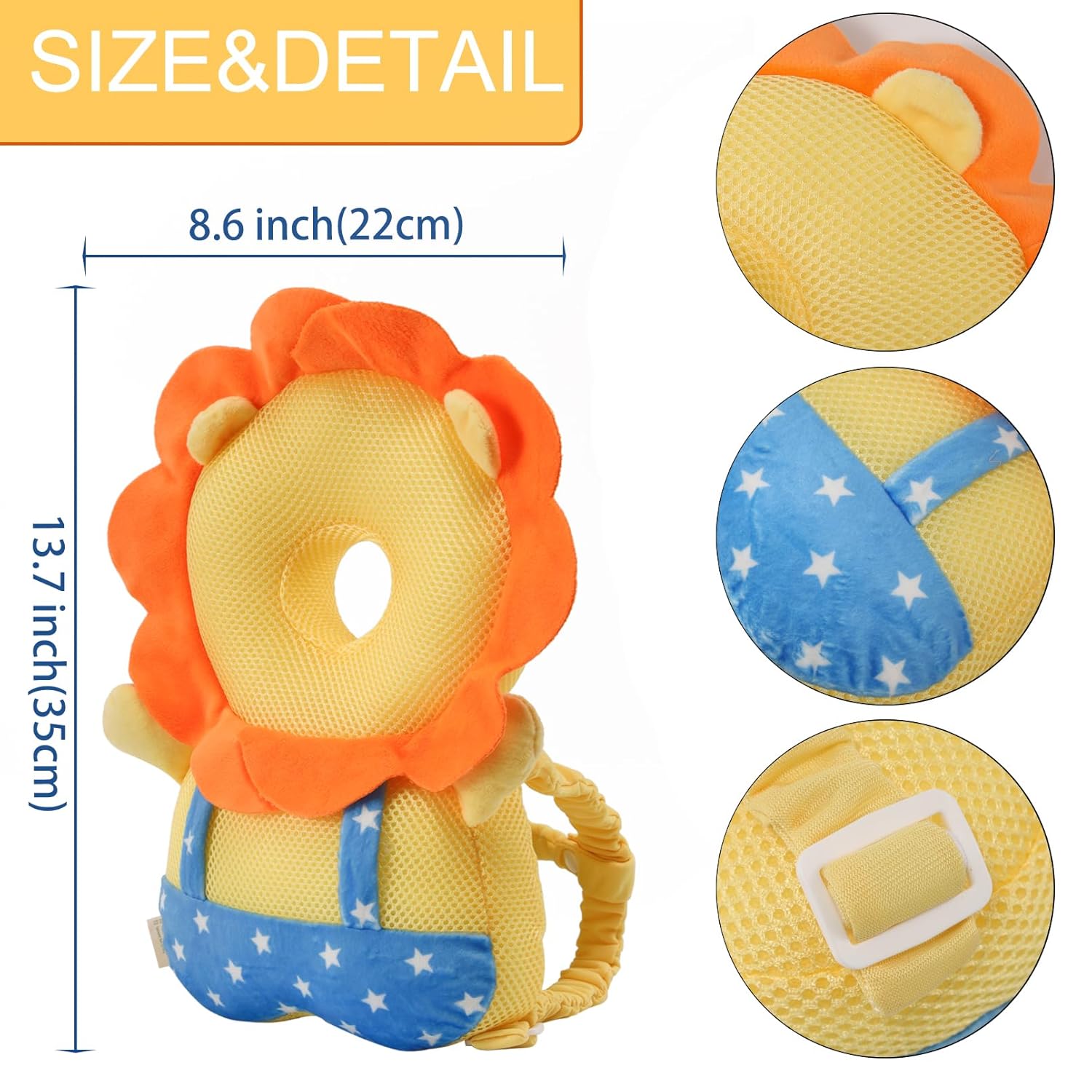 Product features: This baby head pillow has a more reasonable design. It protects the head and shoulders. It protects the head while being breathable and not stuffy. The baby will be more stable when he walks with no pressure on his back. The product is novel and cute, it can prevent falling during the day and care for the baby's safety; at night, it can be used as a soothing doll to soothe the baby's sleep. It is the best choice for babies during their growth period, and it is also a powerful little helper for mothers.